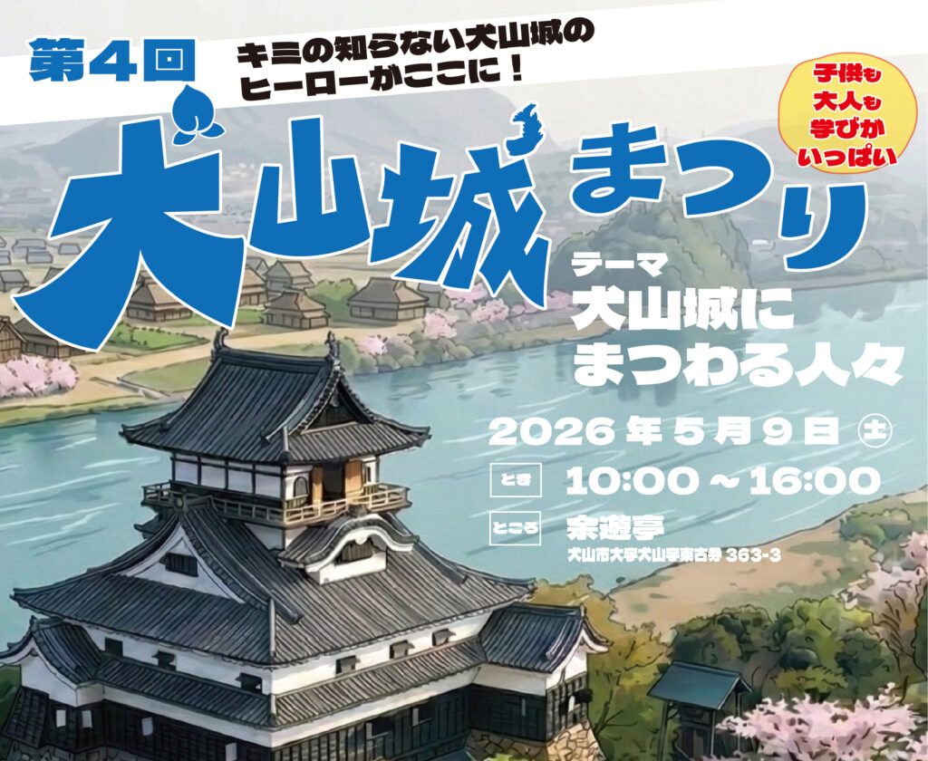 第4回 犬山城まつり 第4回犬山城まつり2026年5月9日(土)10:00~16:00余遊亭(犬山市大字犬山字東古券363-3) テーマ 犬山城にまつわる人々 キミの知らない犬山城のヒーローがここに! 今...