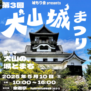 第4回 犬山城まつり 第4回犬山城まつり2026年5月9日(土)10:00~16:00余遊亭(犬山市大字犬山字東古券363-3) テーマ 犬山城にまつわる人々 キミの知らない犬山城のヒーローがここに! 今...